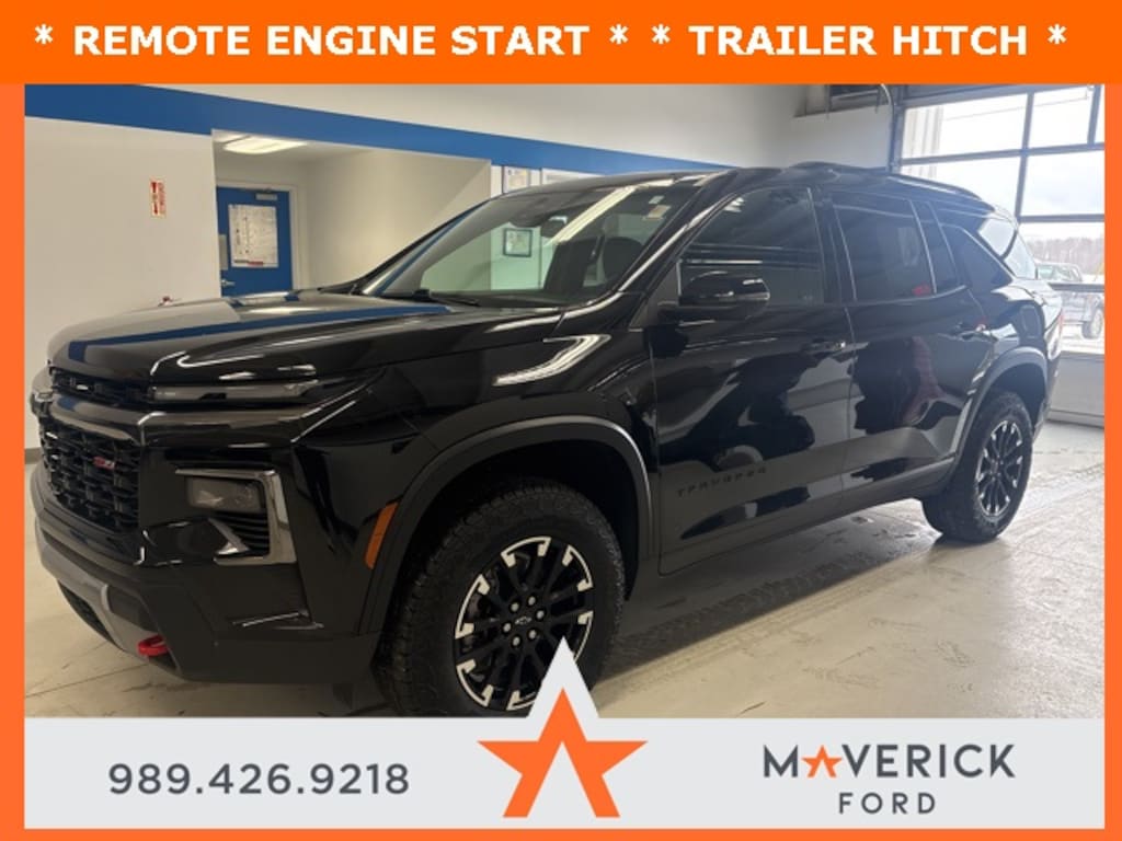 * SUNROOF *, * HEATED SEATS *, * LEATHER SEATS *, * REMOTE ENGINE START *, * TRAILER HITCH *, * 3RD ROW SEATS *, * BACKUP CAMERA *, * KEYLESS ENTRY *, * NAVIGATION *, * APPLE CARPLAY *, * KEYLESS START *, * BLIND SPOT MONITOR *, * BLUETOOTH HANDS FREE *, * ANDROID AUTO *, * SATELLITE RADIO *, * ALL WHEEL DRIVE *, * HEATED STEERING WHEEL *, * DUAL AUTOMATIC TEMPERATURE CONTROL *, * POWER LIFTGATE *, * NON SMOKER *, * GARAGE KEPT *, 1st and 2nd Row All-Weather Floor Liners, 3rd Row All-Weather Floor Liner, 3rd row seats: split-bench, 4-Wheel Disc Brakes, 6 Speakers, 6-Speaker Audio System Feature, 8-Way Power Driver Seat Adjuster, ABS brakes, AM/FM radio: SiriusXM with 360L, Apple CarPlay/Android Auto, Auto High-beam Headlights, Automatic temperature control, Brake assist, Child-Seat-Sensing Airbag, Compass, Delay-off headlights, Driver Confidence Package, Dual front impact airbags, Dual front side impact airbags, Emergency communication system: OnStar, Evotex Seat Trim, Floor Liner Package, Four wheel independent suspension, Front dual zone A/C, Fully automatic headlights, HD Surround Vision, Heated door mirrors, Heated front seats, Heated steering wheel, Illuminated entry, Low tire pressure warning, Navigation System, Occupant sensing airbag, Outside temperature display, Overhead airbag, Overhead console, Panic alarm, Power door mirrors, Power Dual Glass Panoramic Sliding Sunroof, Power Liftgate, Power Outlet, Preferred Equipment Group 2Z7, Radio: : Audio System w/17.7" Diagonal Display, Rear air conditioning, Rear Pedestrian Alert, Rear window defroster, Rear window wiper, Remote keyless entry, Security system, SiriusXM with 360L Trial Subscription, Speed control, Speed-sensing steering, Steering wheel mounted audio controls, Telescoping steering wheel, Tilt steering wheel, Traction control, Traffic Sign Recognition, Trip computer, Turn signal indicator mirrors, Variably intermittent wipers, Wheels: : 18" High Gloss Black Painted Aluminum. Clean CARFAX. CARFAX One-Owner. Mosaic Black Metallic 2025 Chevrolet Traverse Z71 AWD 8-Speed Automatic 2.5L DOHC
