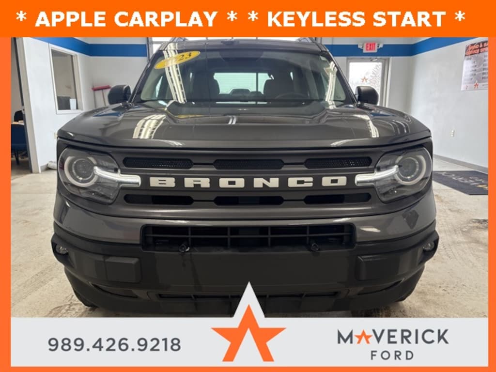 * HEATED SEATS *, * BACKUP CAMERA *, * KEYLESS ENTRY *, * APPLE CARPLAY *, * KEYLESS START *, * BLUETOOTH HANDS FREE *, * ANDROID AUTO *, * SATELLITE RADIO *, * 4X4 *, * NON SMOKER *, * GARAGE KEPT *, 4G LTE Wi-Fi Hotspot Credit, 6 Speakers, AM/FM Stereo, Auto High-beam Headlights, Automatic temperature control, Compass, Delay-off headlights, Driver vanity mirror, Dual front impact airbags, Dual front side impact airbags, Emergency communication system: SYNC 3 911 Assist, Front Driver & Passenger Seatback Zipper Pockets, Fully automatic headlights, Heated door mirrors, Heated Front Bucket Seats, Illuminated entry, Intelligent Access (Lock/Unlock), Knee airbag, LED Fog Lamps, Low tire pressure warning, Occupant sensing airbag, Outside temperature display, Overhead airbag, Overhead console, Panic alarm, Power door mirrors, Rear Parking Sensors, Rear window defroster, Rear window wiper, Remote keyless entry, Security system, SiriusXM, Speed control, Speed-sensing steering, Speed-Sensitive Wipers, Split folding rear seat, Steering wheel mounted audio controls, SYNC 3 Communications & Entertainment System, SYNC 3/Apple CarPlay/Android Auto, Telescoping steering wheel, Tilt steering wheel, Traction control, Universal Garage Door Opener (UGDO), Variably intermittent wipers, Wheels: 17" Carbonized Gray-Painted Aluminum, Wireless Charging Pad. CARFAX One-Owner. Carbonized Gray Metallic 2023 Ford Bronco Sport Big Bend 4WD 8-Speed Automatic 1.5L EcoBoost
